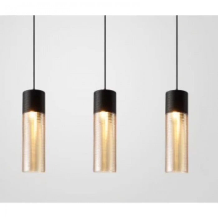 Skleněná závěsná lampa Apera je plná umělecké krásy. Vyznačuje se kontrastem černého svršku a tónovaného hnědého dna. Skleněný materiál spolu s horizontálními liniemi zvýrazňuje celkový design tohoto světla. Je k dispozici ve 3 různých modelech, které můžete kombinovat.