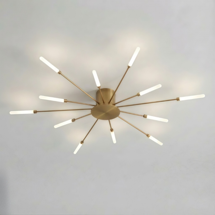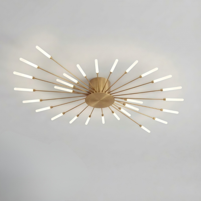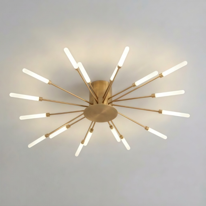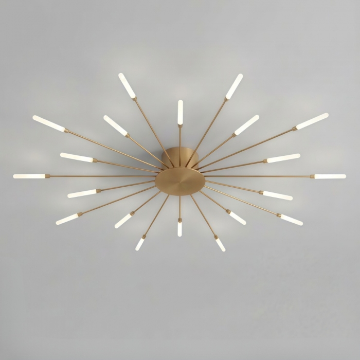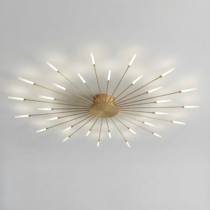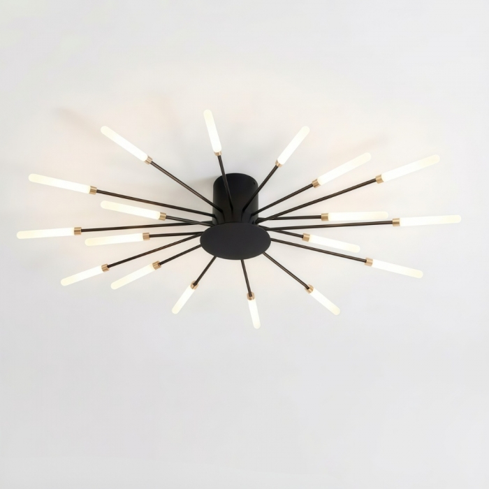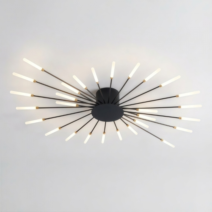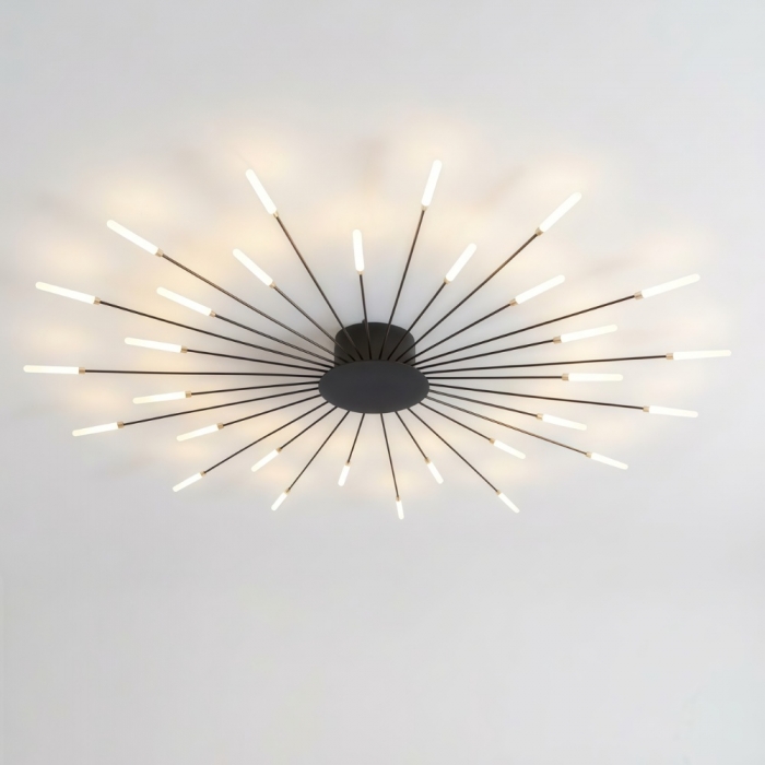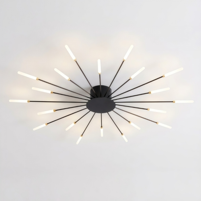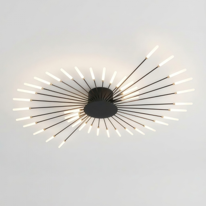 Stropní LED svítidlo Fireworks Design Sputnik ztělesňuje harmonickou směs moderní estetiky a inspirace ve stylu Art Deco. Díky svému atraktivnímu designu LED ohňostroje poskytuje nejen jasné, účinné světlo, ale také vytváří okouzlující atmosféru v každém prostoru. Toto stropní svítidlo je zapuštěné, což mu umožňuje pokrýt větší plochu, aniž by vypadalo přeplněně. Existuje celá řada provedení, včetně 12, 18, 20, 28, 30 a 42 hlav lamp. Dostupné v černé a zlaté barvě.