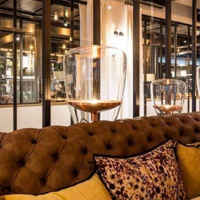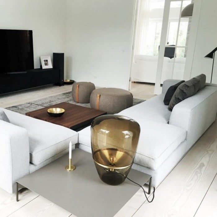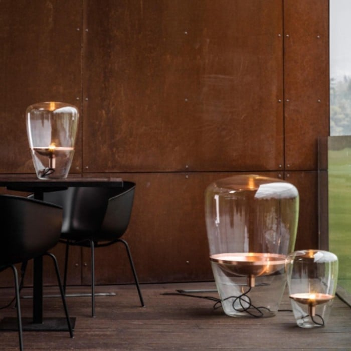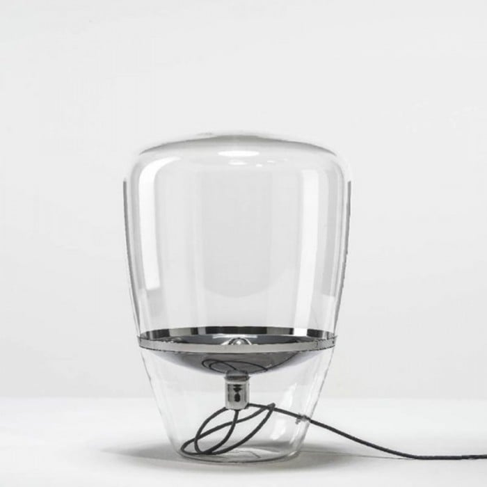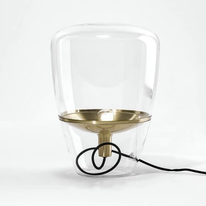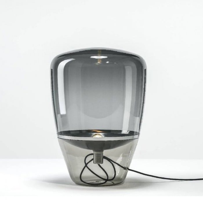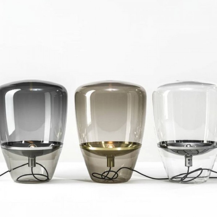 Jak název napovídá, stolní lampa Balloon se vyznačuje jasným stínidlem a lehkostí, která se podobá vzhledu balónu a unáší se stylovou vnitřní výzdobou. Vyrábí se hlavně z kovu a foukaného skla. Sklo je k dispozici ve třech barvách: kouřově šedá, jantarová a čirá a každá barva se spojí s odpovídající kovovou deskou objímky. Celkově skleněné stínítko vypadá jako celá část s deskou přilepenou uvnitř, ale ve skutečnosti existují dvě části skleněných stínítek. Když se obě části spojí bez mezer, vytvoří tuto velkou dutou stolní lampu. Díky jemnému řemeslu a luxusním materiálům vás toto stolní světlo fascinuje. Balónky, jako základní a běžná věc, je snadné, aby se lidé cítili uvolněně a šťastně. Tato stolní lampa Ballon je taková, která vyjadřuje nadčasovou krásu s krásou ručně foukaného skla. Může být použit v obývacích pokojích, kuchyních, ložnicích a komerčních prostorách.