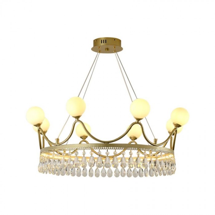Korunní křišťálový lustr je snem každé dívky, protože touží být královnou. Díky speciálnímu designu si jej lidé zamilují, jakmile ho uvidí. Pomocí jednoduchých linií a geometrie načrtne realistickou korunu a odhalí chytrý nápad návrháře a vynikající řemeslné zpracování. Koruna je složena z křivek a opálových koulí. Pod prstenem visí krystaly, které dodávají korunkovému lustru lesk. Proto i když není osvětlená, je to krásná dekorace. Je k dispozici ve dvou velikostech. Ve srovnání s tradičními lustry vám tento nový lustr jedinečného a elegantního tvaru určitě přinese nový vizuální efekt a udělá radost. Je ideální k zavěšení do obývacího pokoje nebo ložnice. Může nejen vyzařovat pocit luxusu, ale také vytvářet romantickou atmosféru.
