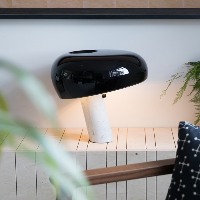Stolní Lampa Snoopy je celkově jednoduchá a krásná, přičemž ikonický Snoopy se skládá z proskleného kovového reflektoru. Světla při rozsvícení odrážejí hypnotizující záři. Stolní Lampa Snoopy je k dispozici v klasické černé a bílé. Dodejte svému domovu umění pomocí této stolní lampy.