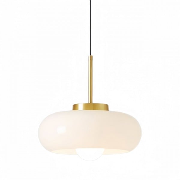 Toto Nordic Vintage skleněné závěsné svítidlo Bauhaus je podmanivou směsí nostalgie a moderny. Kulaté skleněné stínidlo Bauhaus a měděný rám jsou důkazem nadčasového designu. Vyberte si mezi zářivě bílou nebo zářivě oranžově žlutou, abyste do každého prostoru vdechli nádech retro elegance. Toto retro skleněné závěsné svítidlo je ideální pro osvětlení eklektických obývacích pokojů, elegantních kaváren nebo minimalisticky inspirovaných pracovních prostorů s nádechem Bauhausu.