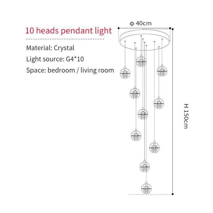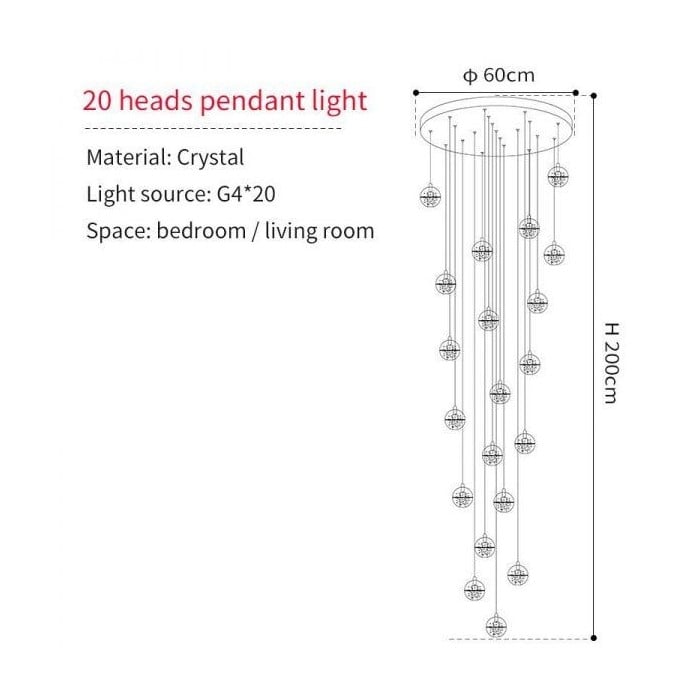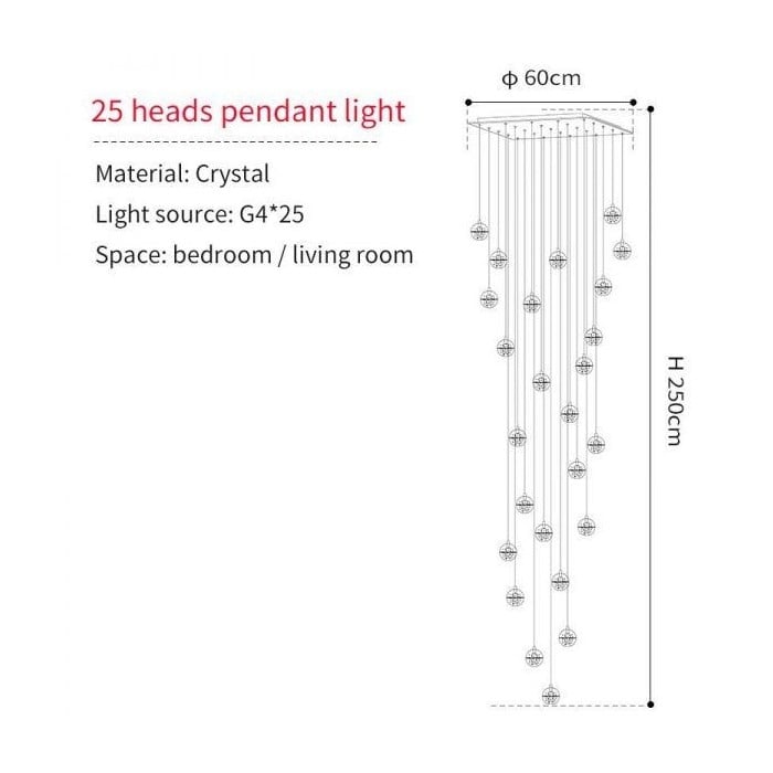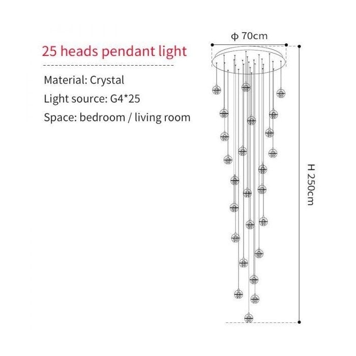 Crystal Pendelleuchte ist eine exquisite und elegante Leuchte. Es wird normalerweise zu einem Kronleuchter geformt, der Sternenglanz bringt. Diese Kristallkugeln sind wunderschöner Schmuck, auch wenn sie nicht beleuchtet sind. Sie können in zufälligen oder regelmäßigen Formationen gruppiert werden. Dieser filigrane Kronleuchter eignet sich für Flure, Treppen und Flure und verleiht großen Räumen Glanz.- Dieses Produkt kann angepasst werden. Wenn Sie eine Anfrage haben, kontaktieren Sie uns bitte.