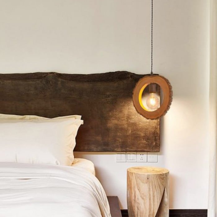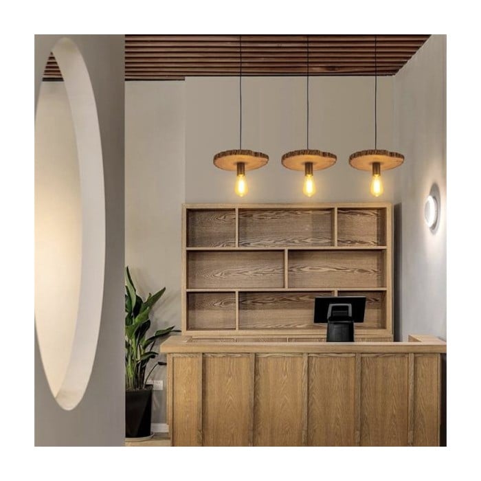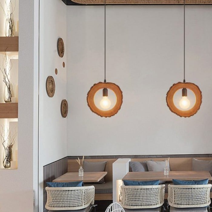 Llena de encanto pintoresco y elegante, la lámpara colgante de madera Annulus utiliza la forma original del tronco, lo que refleja la creación y la belleza de la naturaleza. Cada textura y veta se forma de forma natural. Disponible en dos diseños.
