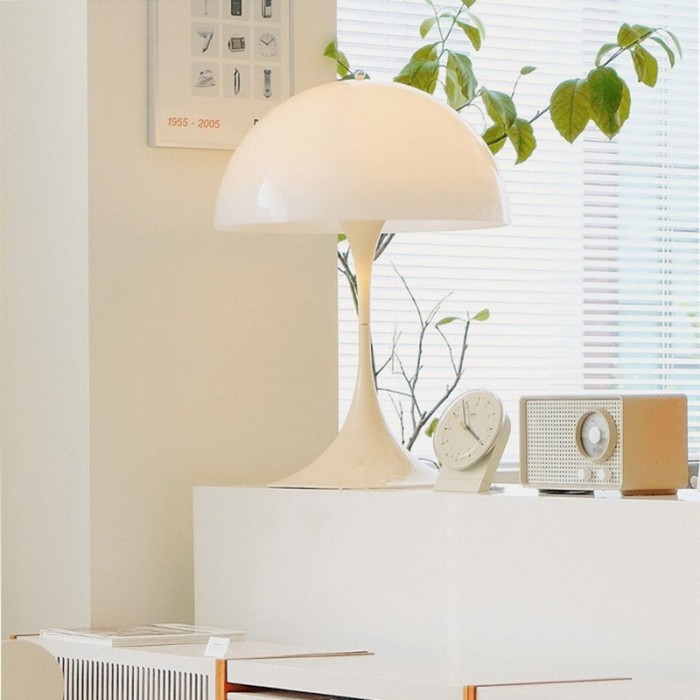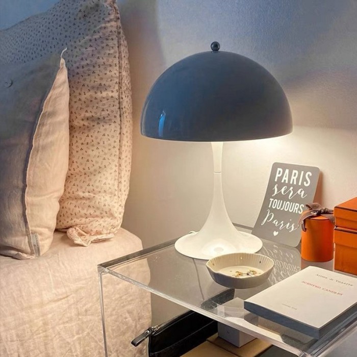 La lampe de table portable hémisphérique incarne l'idée de combiner la forme, la couleur et la lumière pour apporter des effets riches à l'environnement environnant. Les lumières fournissent un éclairage sans éblouissement pour une ambiance chaleureuse. Elle embellira votre maison et ajoutera un charme moderne du milieu du siècle. La série de lampes est disponible en trois tailles.