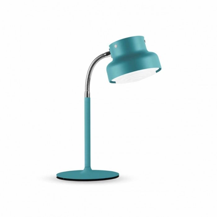 Abbiamo la mini lampada da tavolo Bumling in bianco, nero, grigio, blu polvere, viola polvere, rosa polvere, verde polvere e turchese. Puoi usarla come lampada da comodino, lampada da lettura e molto altro!