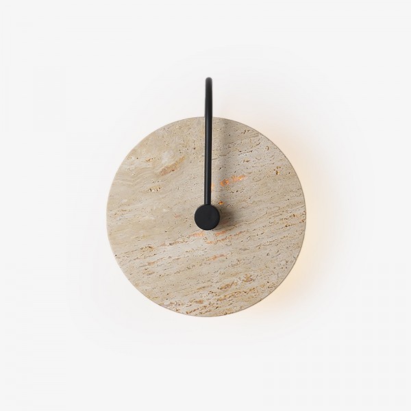 この時計型のトラバーチン ウォール ランプは、最高級のアラバスター石で作られた真の芸術作品です。象徴的な円形と個々の雪の結晶の模様が、暖かく魅惑的な間接照明を生み出します。