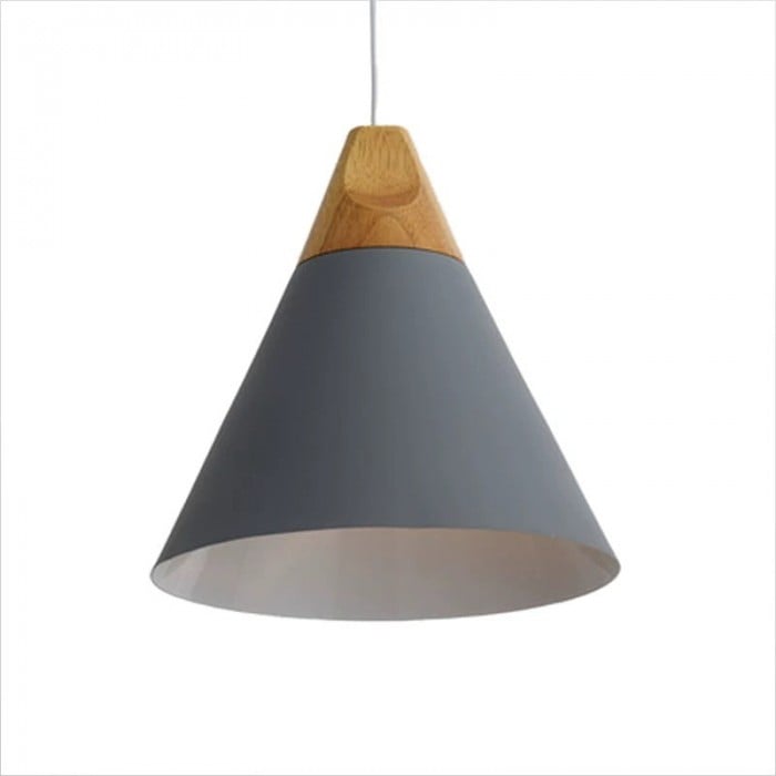 나무와 금속을 결합한 Connell Coned Woody Pendant Lamp는 두 가지 단순한 기하학을 보여줍니다. 밝은 마무리가 더 흥미롭게 만듭니다. 나무 상단에는 전체 램프가 매끄럽게 보이는 호 디자인이 있습니다.