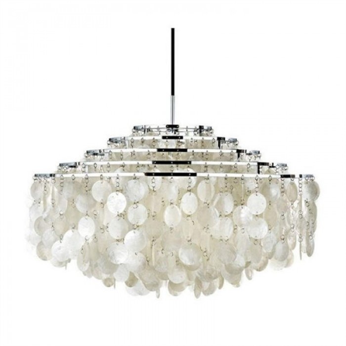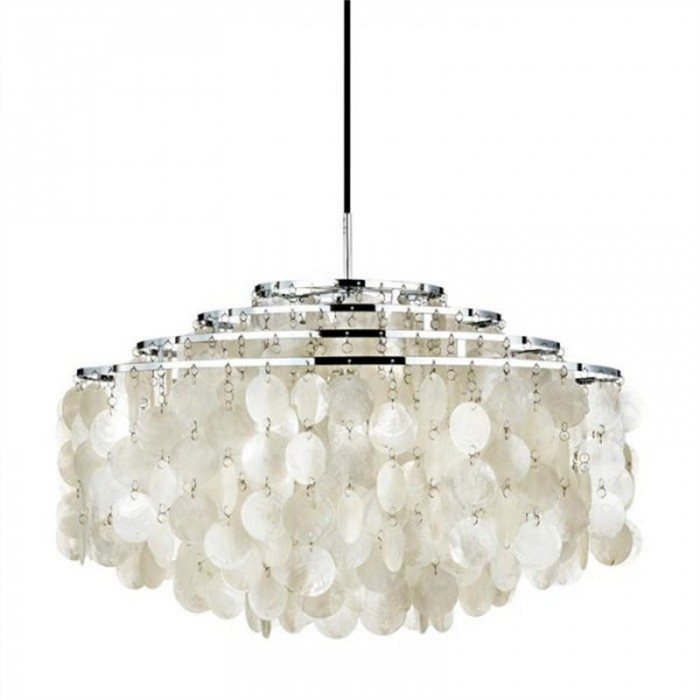 FUN Collection Pendant Light는 테이블 램프도 포함하는 아름다운 조명 시리즈입니다. 우아하고 화려한 집 장식을 찾고 있다면 이 중 하나가 필요합니다! 디자인뿐만 아니라 소재도 독특해서 감탄을 자아냅니다. 이 컬렉션에는 작은 고리로 연결된 많은 흰색 조개 디스크가 있습니다. 그리고 디스크의 끈은 광원을 덮기 위해 메인 링 주위에 매달려 있습니다. 다양한 크기가 있으며 황동 또는 크롬의 두 가지 마감 처리가 가능합니다. 이 샹들리에는 기쁨, 아름다움, 경이로움을 느낄 수 있습니다. 거실이나 식당에 설치하여 시각적 센터를 형성할 수 있을 정도로 매력적입니다. 재미있고 화려한 시각적 경험을 즐길 수 있습니다.
