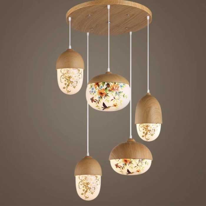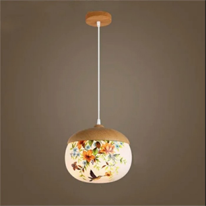 NUT 펜던트 조명은 전등보다 장식에 가깝습니다. 동그랗고 귀여운 모양의 견과류가 들어있어요. 나무 질감과 유리의 조합이 우아하고 특별한 펜던트 램프를 만듭니다. 네 가지 크기로 제공되며 나무 질감으로 덮인 금속 상판과 오팔 유리 갓으로 구성되어 있습니다. 눈에 띄는 것은 유리 전등갓에 그린 풍경화로 마치 그림 속의 나비와 새가 순식간에 날아갈 것 같은 생생한 예술입니다. 꽃과 동물의 그림이 이 심플한 스칸디나비아 펜던트 조명에 광택을 더합니다. 장식용 그림을 사용하면 조명을 받든 안 켜놓아도 아름다운 장식품이 됩니다.