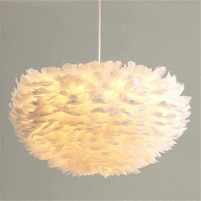 De hele lamp is wit afgewerkt, mooi als de vleugels van de engel. Met de hand gemaakt, elk onderdeel toont het voortreffelijke vakmanschap. Het is gemakkelijk te installeren en schoon te maken. Je kunt de stofdoek gebruiken of de veren wassen met een föhn.