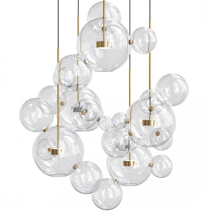 De multi-head bubble lamp lijkt op lichte zeepbellen die in de lucht zweven. Het is een tijdloos kunstwerk, dat de charme van het handgeblazen glaswerk laat zien. Het zal indruk maken op uw gasten en u een aangename stemming geven.