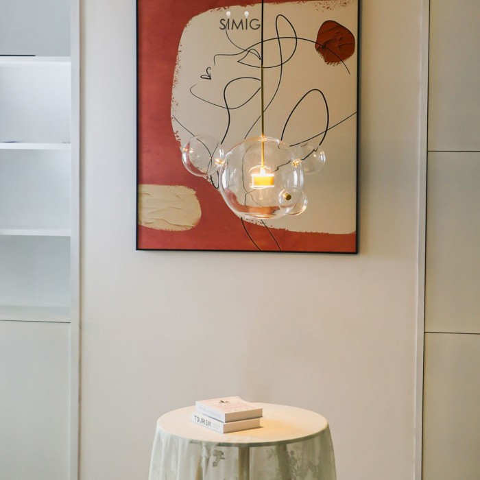 De magische bubble hanglamp creëert een fantastische en romantische wereld met alleen slanke staven en glazen bollen. De bubble kroonluchter gebruikt zeepbellen om de lichtheid van het licht te onthullen.