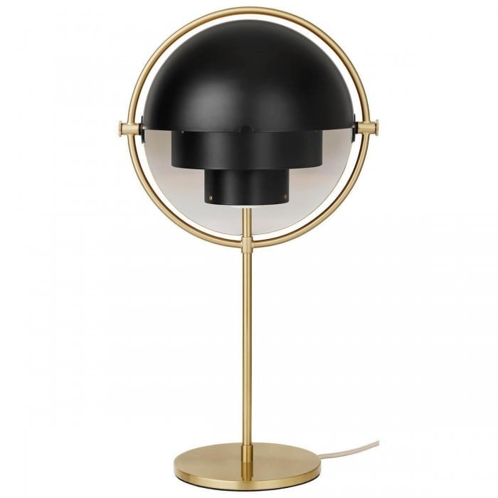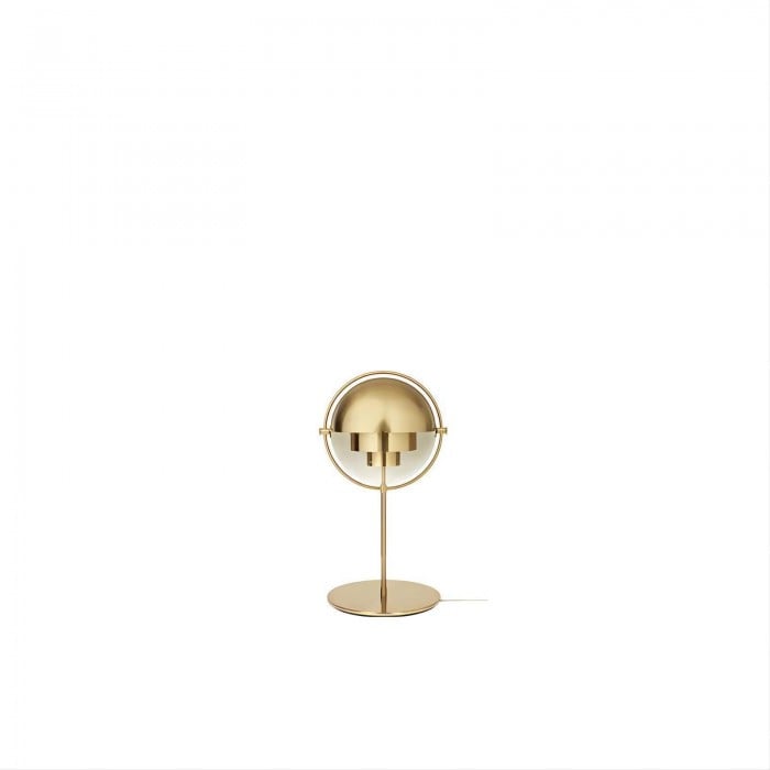 Lampa stołowa Multi-lite jest dostępna w trzech typowych metalicznych kolorach, luksusowym mosiądzu, czystej bieli i wysokiej jakości czerni. Możesz zmienić kształt tej lampy, obracając klosz, co stale daje nowe wrażenia wizualne. Wnętrze klosza jest białe, dzięki czemu lepiej pełnić funkcję rozpraszacza światła.