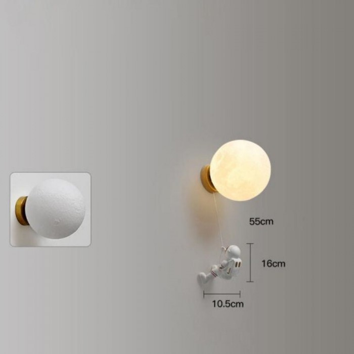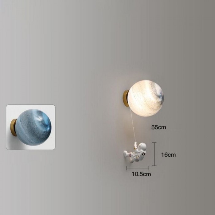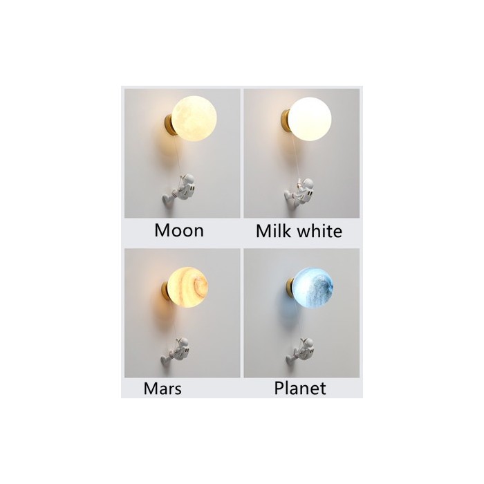 Ta seria kinkietów zawiera cztery szklane kule o różnych wykończeniach, Planet, Mars, Moon i mleczno-białe. Astronauta jest wykonany z materiału żywicznego. Każda tekstura jest drobno zarysowana, aby stworzyć delikatnego astronautę. Długość drutu między astronautą a planetą wynosi 55 cm i można ją regulować.