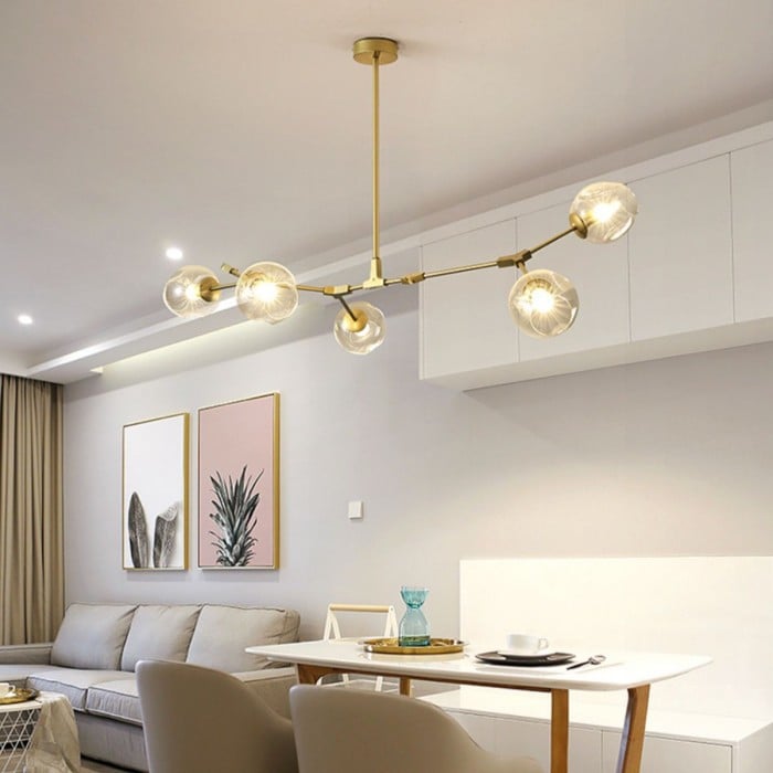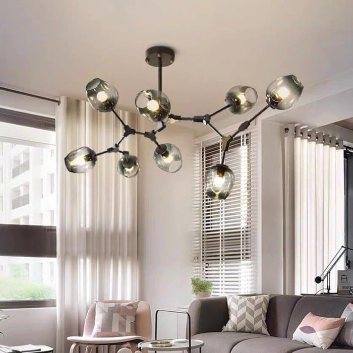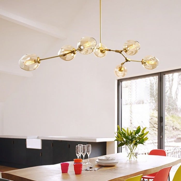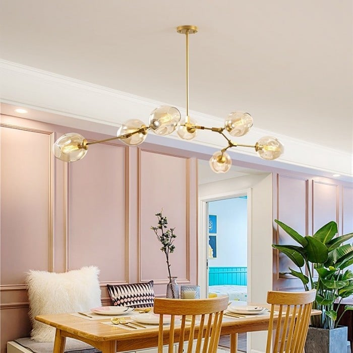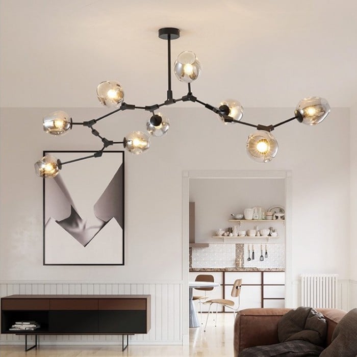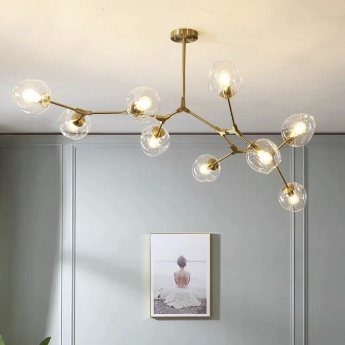 Żyrandol Lindsey Adelman Branching Bubble po raz pierwszy powstał w 2006 roku i zainspirowany był akcesoriami przemysłowymi - mosiężnymi przegubami obrotowymi i kolankami. A projektantka Michiko Sakano połączyła je z zaokrąglonymi szklanymi kulami, co wnosi klasyczny i elegancki żyrandol.
