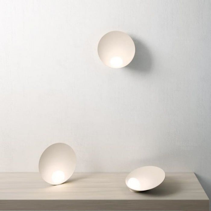 Konstrukcja tej serii to aluminiowy krążek trzymający małą kulkę ze szkła opalowego. Kolorystyka to głównie ciepłe, jasne kolory. Oczywiście z myślą o nowoczesnej industrialnej aranżacji wnętrz oferujemy również wysokiej jakości czerń. Szklana kula ma wewnątrz źródło światła LED i możesz wybierać pomiędzy ciepłym światłem, białym światłem lub trójkolorowym światłem.
