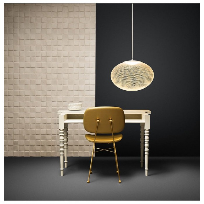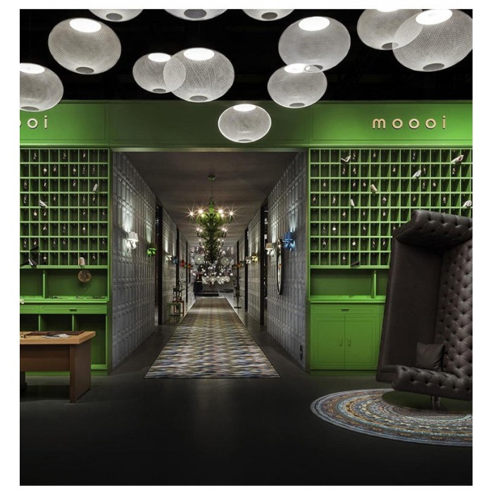 Po oświetleniu metalowy klosz z siatki i światło współpracują ze sobą, dając ludziom poczucie komfortu. Jest to elegancka i piękna lampa dekoracyjna. Chcąc oświetlić przestrzeń, należy zastosować ją z innymi pomocniczymi źródłami światła.