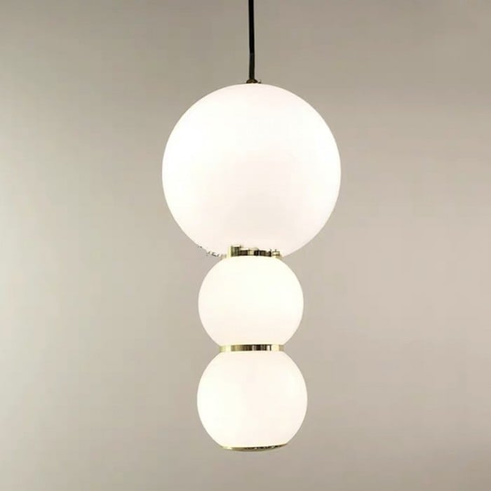 Potrzebujesz wygodnej sypialni po dniu pracy? Ta nowoczesna minimalistyczna lampka nocna może Ci w tym pomóc. Lampa wisząca Pearls łączy filozofię projektowania Bauhausu, prezentując elegancję i sztukę za pomocą świetlistych szklanych kul.