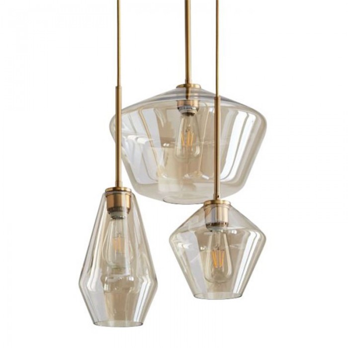 Mainly made of metal and glass, it is composed of a vintage gold body and a contrasting tinted brown glass shade or transparent glass shade. It is available in three geometrical shapes.