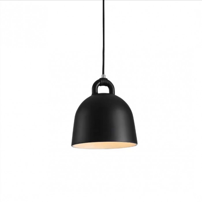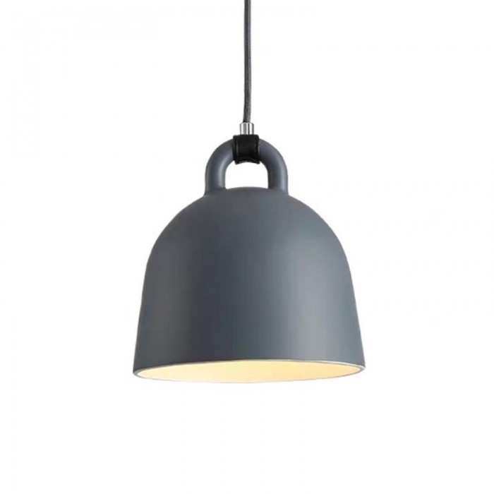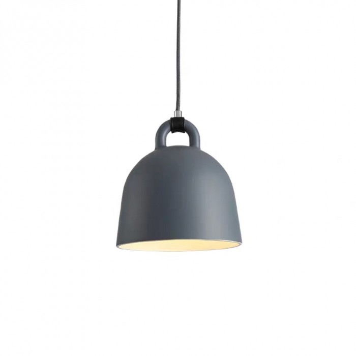 Bell pendant lamp is a minimal Nordic light fixture, which has a simple form of bell but a dramatic effect. Every details express exquisite craft and creativity of this lamp. The smooth lampshade is available in four colors, sand, grey, white and black. Compared with the cold surface of the metal, the designer subtly used soft rubber to connect the wire and the metal, creating a impact of visual effect of different materials and making this industrial light fixture look like softer. With the white interior, the light can be reflected and converge better to provide practical lighting. It has four sizes, which can be hung singly or clustered in a group. This classy lamp is suitable for both home decors and commercial places. As a functional lighting, it will add luster to your dinning table, which must impress your guests.