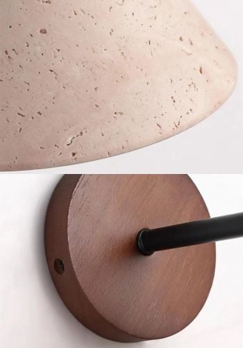 Beige travertine wall sconce and walnut travertine wall sconce provide refined lighting for the living room or bedroom. This natural stone wood wall sconce with its cone design brings warmth and authenticity, while the travertine living room wall sconce fits perfectly into modern, minimalist, or Mediterranean interiors.