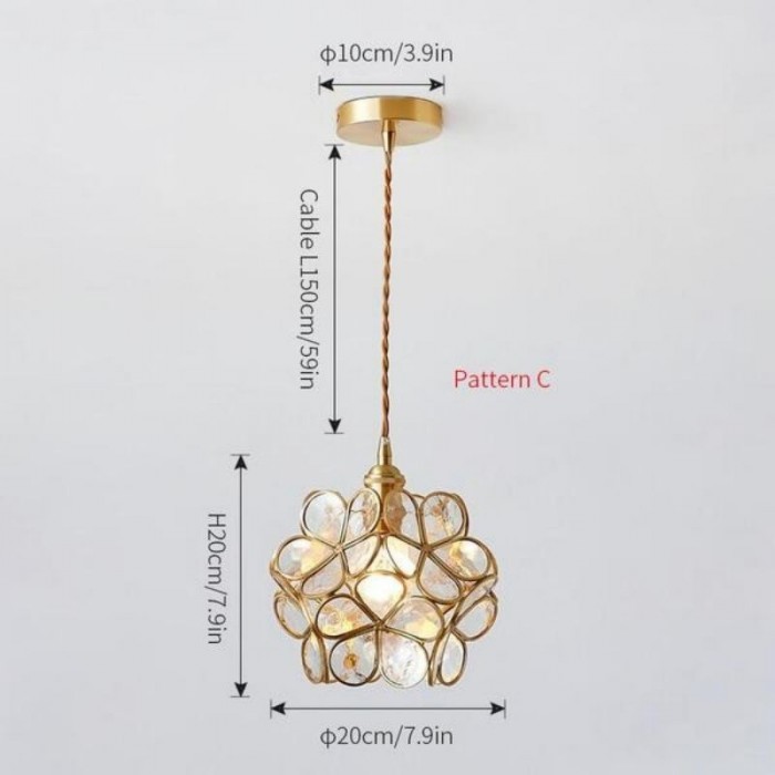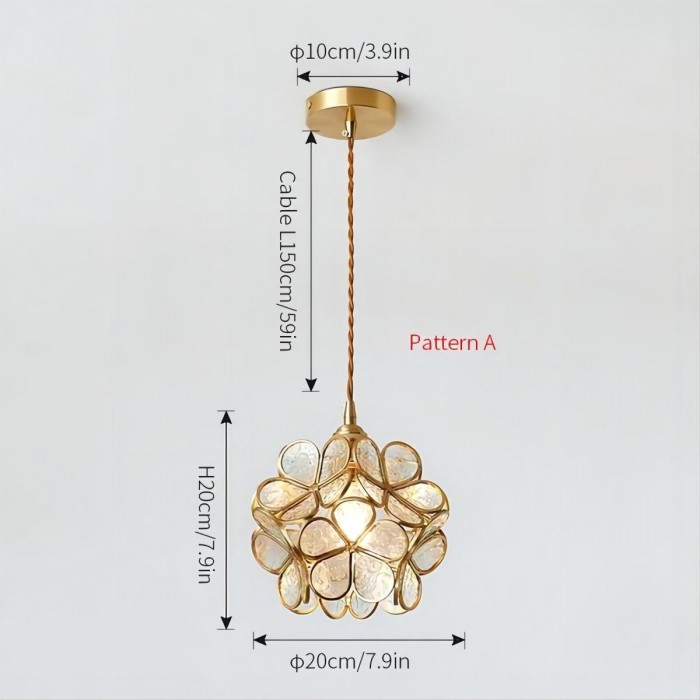 Nordic Brass Flower Petal Glass Pendant Light S10