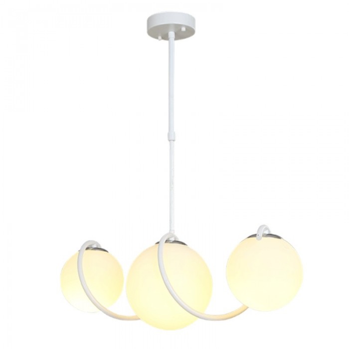 Mainly made of metal and glass, it uses a curve to connect three spherical lampshades. It is available in two finishes, white or black. With warm light, the simple chandelier will render the cozy atmosphere and gives a relaxing feel.