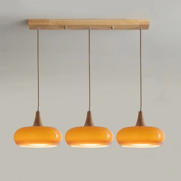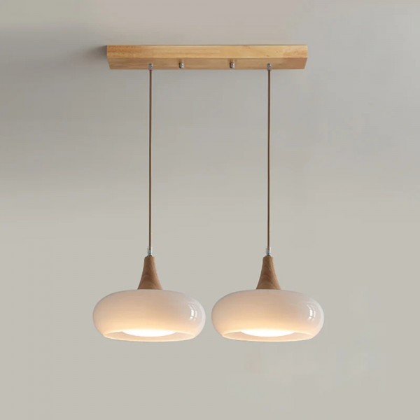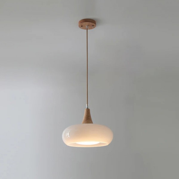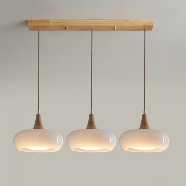 Combining smooth glass with refined wooden accents, this pendant lamp blends minimalist structure with artisanal warmth. Its softly curving silhouette casts gentle illumination—ideal for dining zones, reading nooks, or kitchens looking to enhance ambiance with understated elegance.