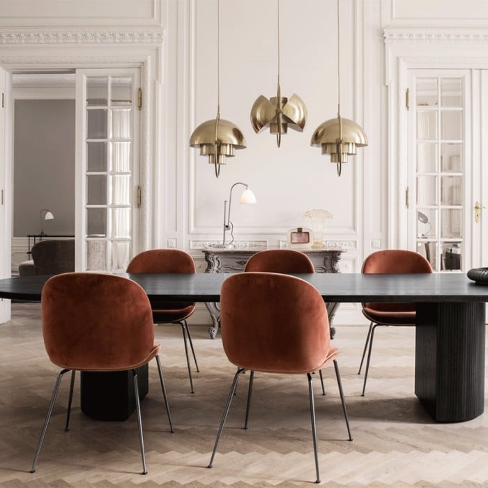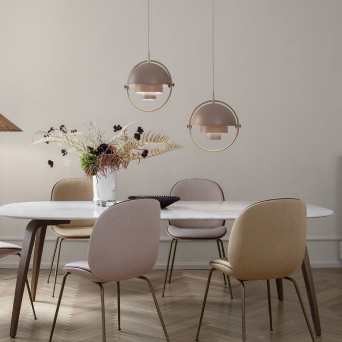 Multi-lite Pendant Light was designed by Danish designer, and achieves a subtle harmony through the nesting of multiple levels of lampshades. The addition of this new finish to the collection brings beautiful depth and enhances the details of the iconic light fixtures, giving the collection a new sense of calm that can be enjoyed in soft light. Multi-lite Pendant Light has a unique luxury and antique aesthetic that has become one of the popular Scandinavian designs.