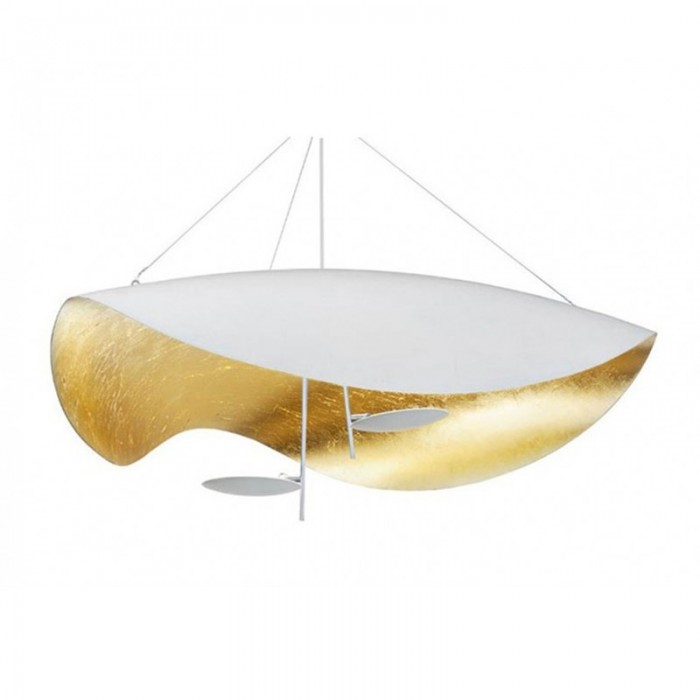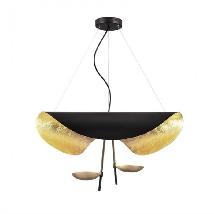 When the Lederam Manta suspension is illuminated, the light brightens up the golden interior, bathing the entire lamp in the glow. It is versatile and you can choose pendant light or ceiling light to beautify your home.