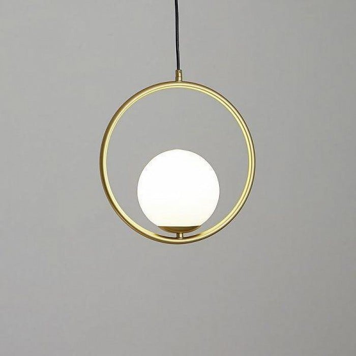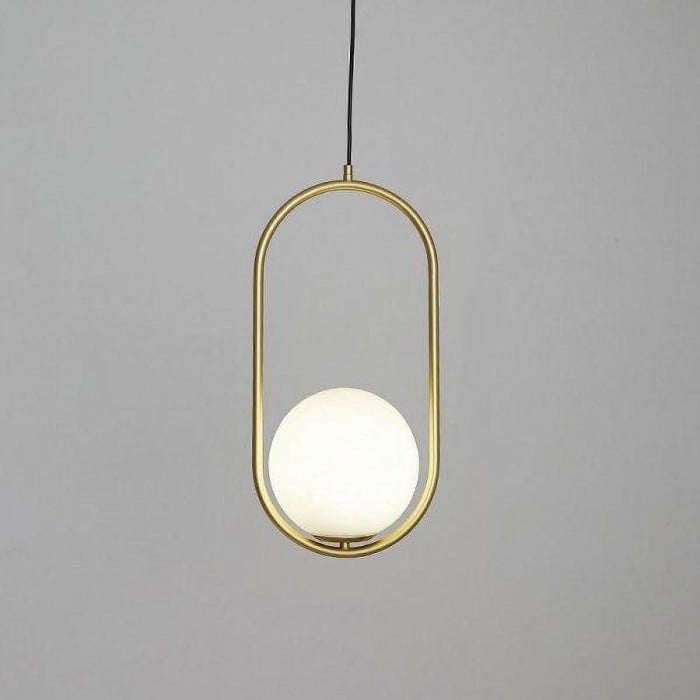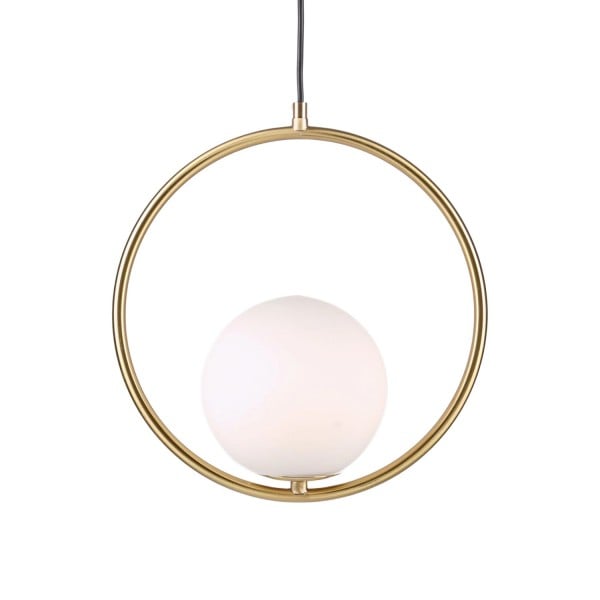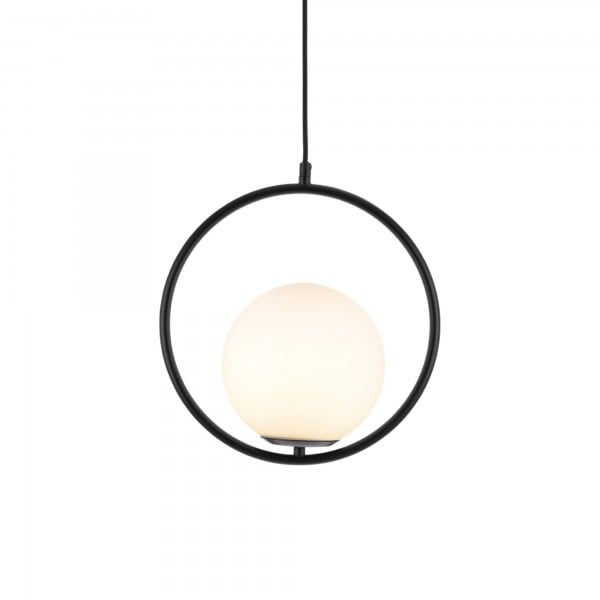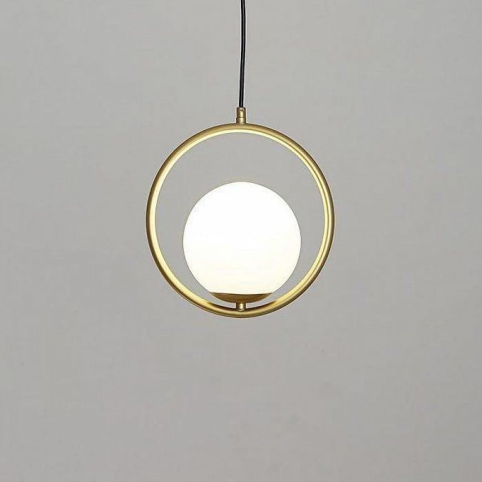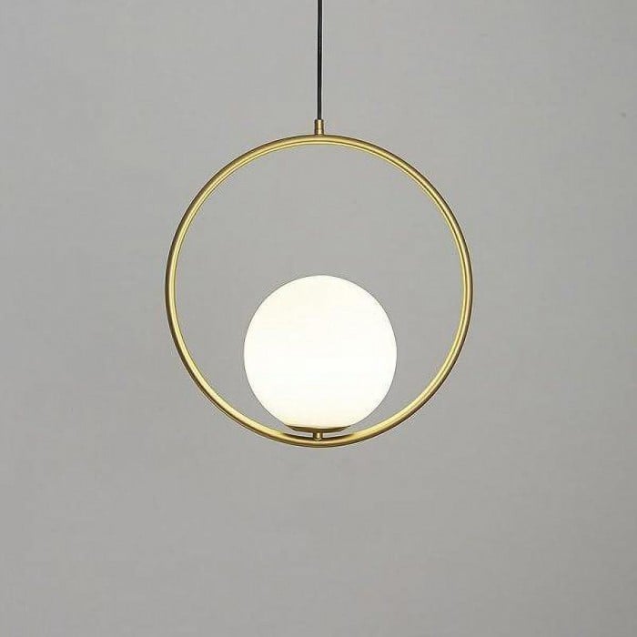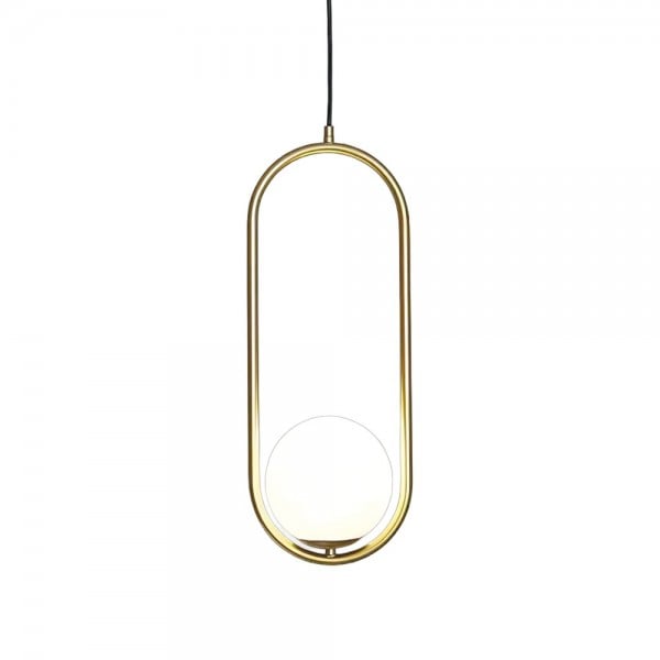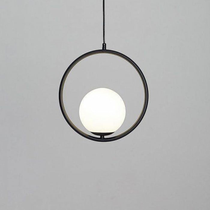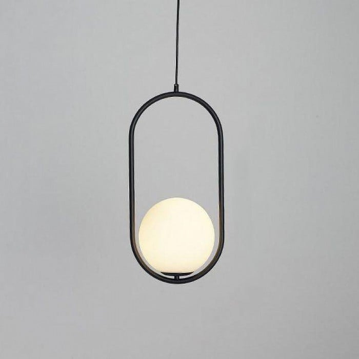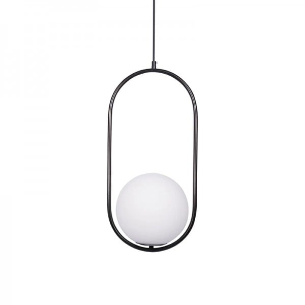 Mila pendant lamp is a simple geometric pattern, which makes a brilliant statement in any space. This contemporary design can modernize your place and bring a feel of minimalist to your interior decoration Mainly made of metal and glass, it combines solid figure and plane figure well. The globular opal glass lampshade is complemented by circle or ellipse metal ring in black or gold. Each design is available in several sizes. This versatile pendant lamp brings a modern inspiration to your home. With its exquisite beauty and stunning details, it can not only offer a good lighting, but also add a perfect fashion to your living room, dining area and bedroom.