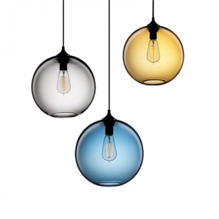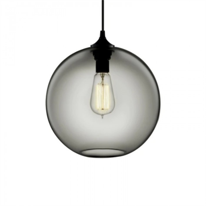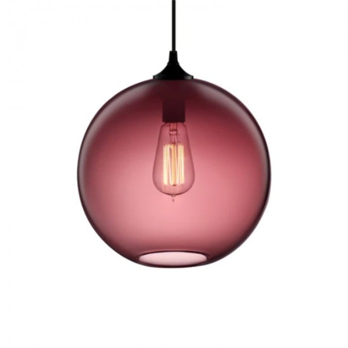 Niche Solitaire pendant light is an exquisite design with beautiful colors,which is like a floating fishbowl. With the simple spherical glass shape, it can collocate with the Edison bulb, where ribbon-like loops of carbon filament casts the glow of a flame, displaying fascinating aesthetics from transparent or semitransparent lamp shape. The glass lamp shape is available in seven colors, Amber, Clear, Grey, Plum, Sapphire, Smoke and Milky White. The canopy and wire is black by default. This light fixture is a classic glass pendant lamp, as it is a never out-dated design which directly expresses the beauty of the light. Owing to regular and easy-matching shape, it is perfect for use in modern living rooms and dining areas. Once illuminated, this lamp is beautiful, creating a softer light for a more relaxing atmosphere.