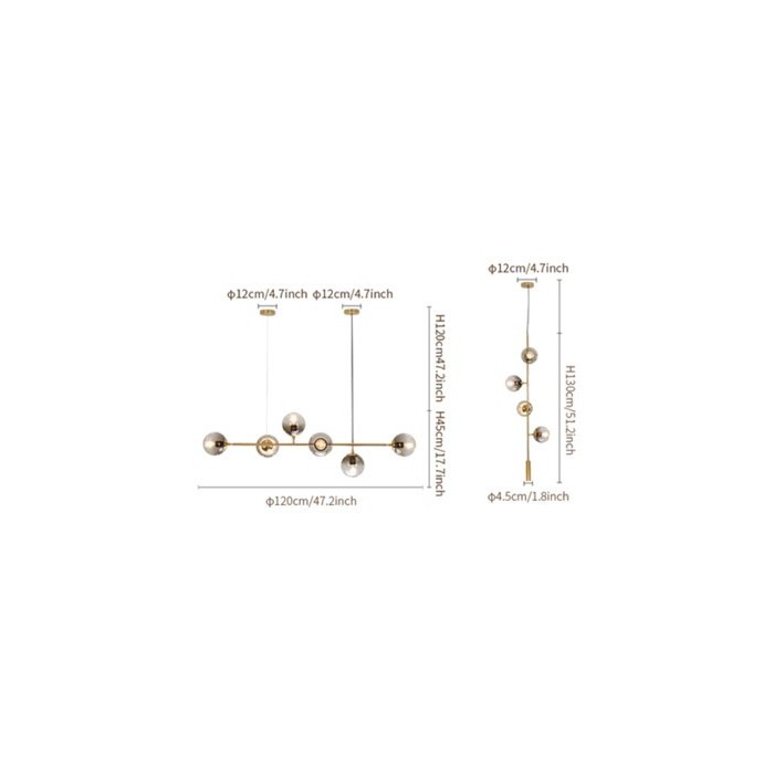 - Horizontal 6 Heads: L 120 cm x H 45 cm/∅ 47.2″ x H 17.7″