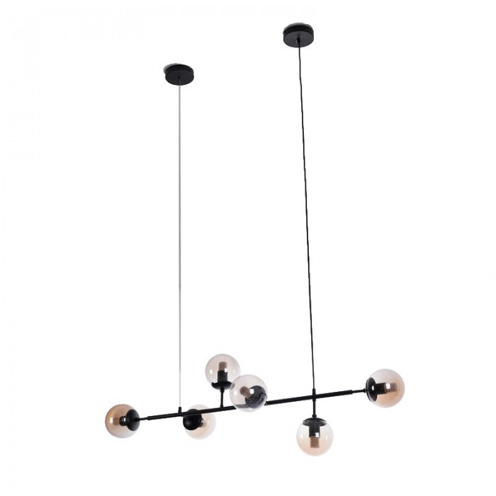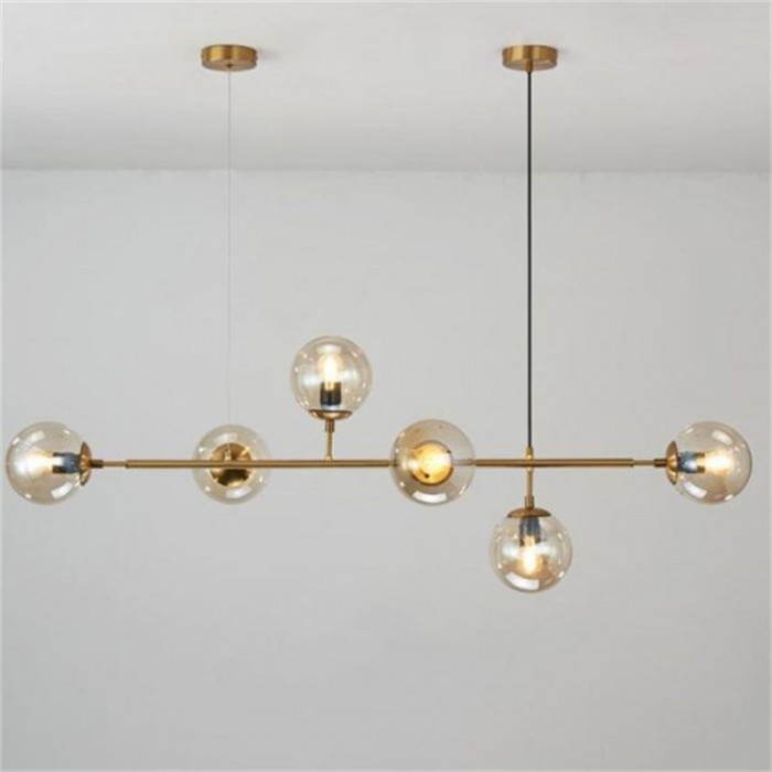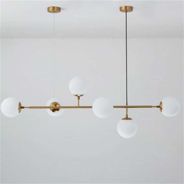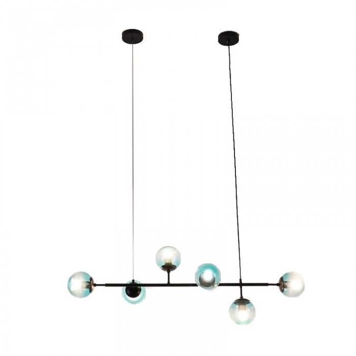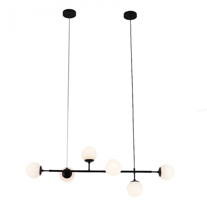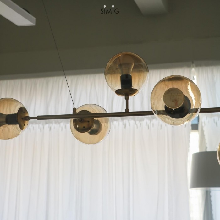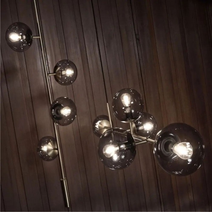 Orb ceiling light is available in horizontal Orb pendant light and vertical Orb Lounge pendant light. The combination of metal and glass gives your interior an industrial touch. Cantilevered ropes connect glass balls in all directions along a line to create a visually compelling display, which has a clean, pared-back effect.