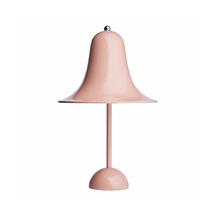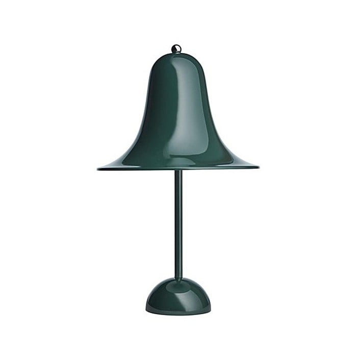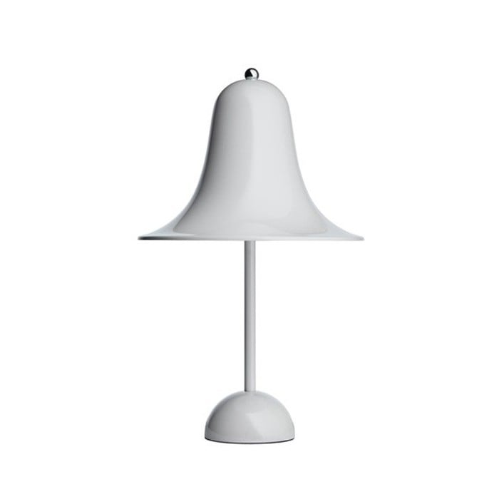 The iconic Pantop table lamp illuminates the interior with its bell-like shade. The flaring shade spreads the light downwards. A variety of colors is suitable for all tabletops.