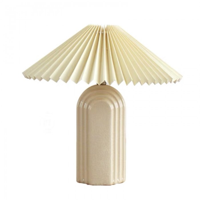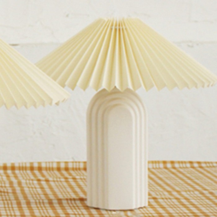 Ripple Table Light is full of Mediterranean style. The ripples on the ceramic base and blue tones will remind you of the sea, which is very comfortable and suitable for a modern indoor decoration. Made of ceramics and silk cloth, it has a flattened columnar base with ripple patterns and a corrugated lampshade. Both the lampshade and the base are available in teal green and linen and the base has one more choice, white. This special design of textured pattern strengthens the visual appeal, making it attractive and last in fashion. It can be not only a bedside lamp but also a decoration in the living room.