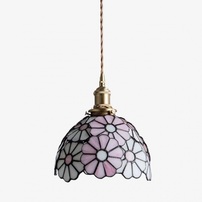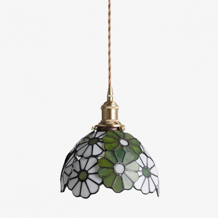 Illuminate your interiors with the Sevra Floral Mosaic Pendant Light, a handcrafted ceiling lamp featuring a floral-inspired stained glass design. The decorative glass subtly diffuses light, creating a warm and inviting ambiance. Its elegant mosaic pattern and timeless silhouette make it an ideal centerpiece for dining rooms, living areas, kitchens, or accent lighting spaces.