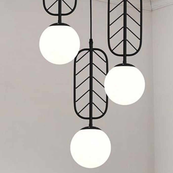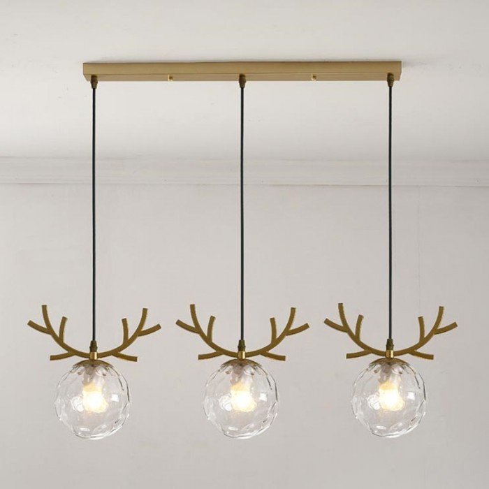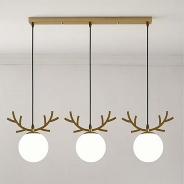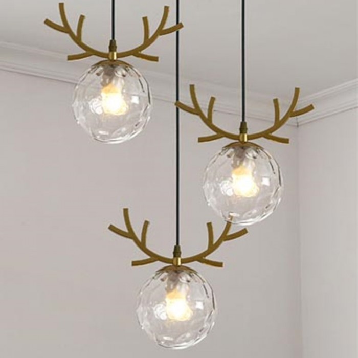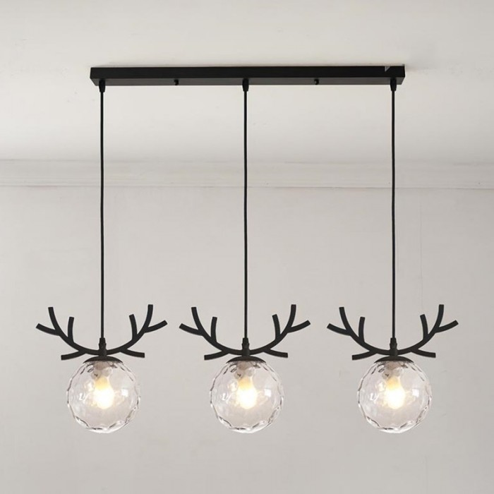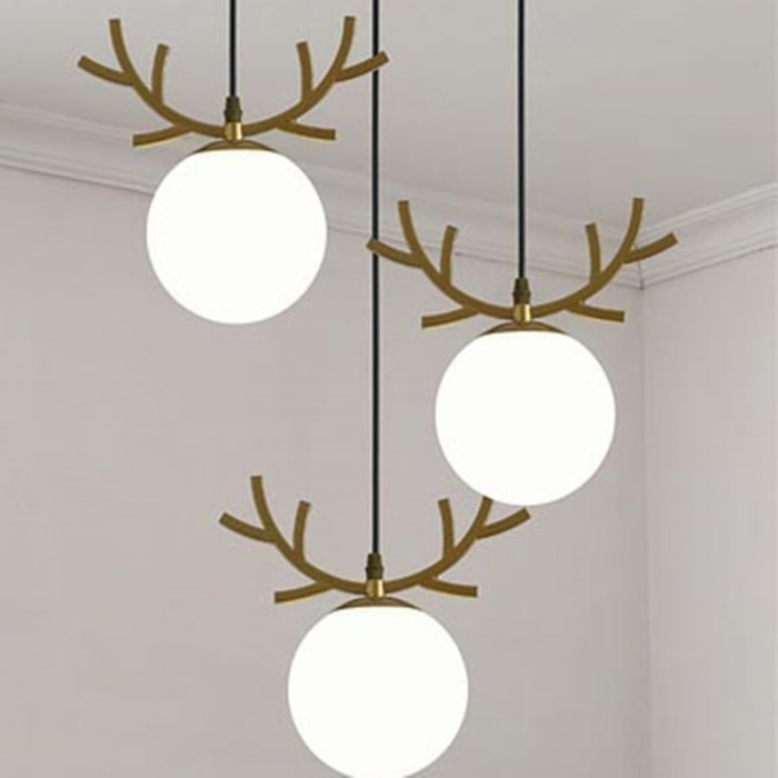 Fun and delicate three-head WARM Pendant Light has three different hangers, which makes an ingenious use of glass ball lampshades as a part of the design. Therefore this chandelier has a variety of models to meet different preference. Mainly made of metal and glass, it adopts the Nordic elements like deer head and leaf. With simple lines sketching out the shape, it reveals the minimalist and post-modern charm. Available in gold or black finish, it can be assembled with a long strip or a round plate. This chandelier is ideal for hanging over a dining table or a small round table. It can play a role in rendering atmospheres. With warm light, glass balls glow, which will create a serene and cozy atmosphere.