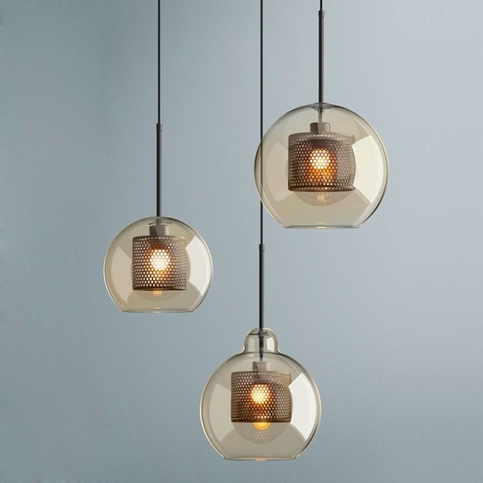 Chiswick hängande armaturer i glas är de lockande moderna hängande taklamporna, som lätt kan smälta in i alla inomhusdekorationer. Jämfört med andra hängande lampor i glas har den en invändig metalllampskärm som är som en bikupa. Detta speciella element lägger till den industriella charmen till dessa tiffany glas taklampor. När de är upplysta kommer ljuset inte att reflektera glasskärmen direkt samtidigt som det utsöndras från hålen, vilket skapar ett mysigt och mjukt sken.
