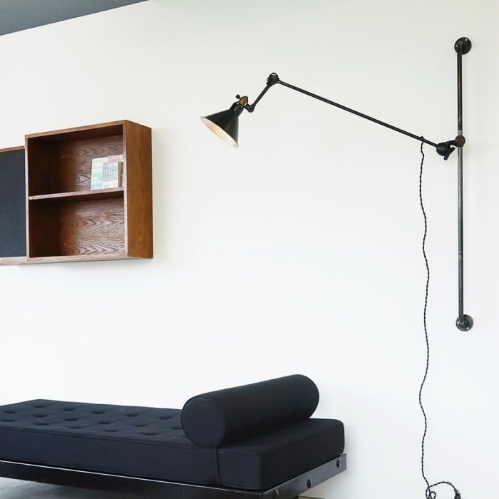 "Swing Arm Wall/Ceiling Light" är en ikonisk industristil från 1900-talet. Det är en enkel, robust och funktionell armatur designad av en fransk designer för kontoret eller arbetsrummet.