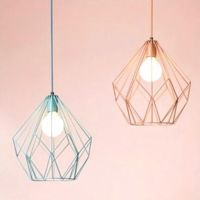 Macaron Cage Pendant Light använder enkla linjer för att beskriva ett elegant utseende. Den böjda och ihåliga designen fyller utrymmet med en känsla av stil. Detta är en innovativ industriell pendellampa som tar bort den tråkiga känslan av traditionella industridesigner. Den är tillverkad av metall och har en symmetrisk lampskärm som består av geometri. Trianglarna och diamanterna bildar den ihåliga lampskärmen, som är enkel och vacker. Den finns i två macaronfärger, grön och rosa. När det är upplyst kommer det att utstråla en metallisk glans. Den är idealisk för att hänga i kommersiella områden, eftersom denna hängande lampa kan dekorera och återge en nordisk stil. Det kan också användas hemma, vilket skapar en elegant atmosfär.
