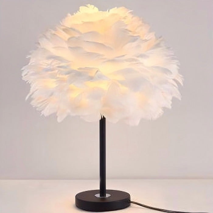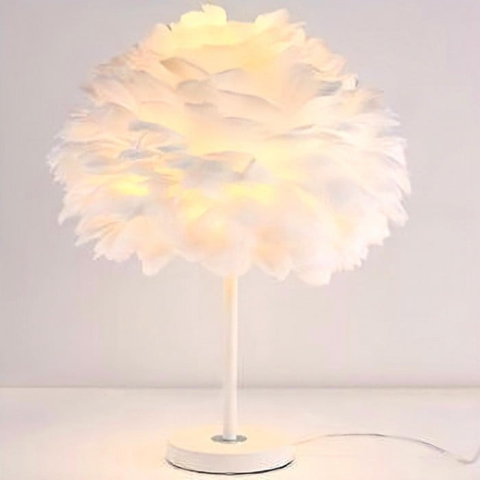 PLUME Table Light är en vacker och romantisk dekoration på bordet, som är perfekt för sovrummet eller vardagsrummet. Den mjuka vita fjäderlampskärmen ger en bekväm visuell effekt. Finns i två baser.