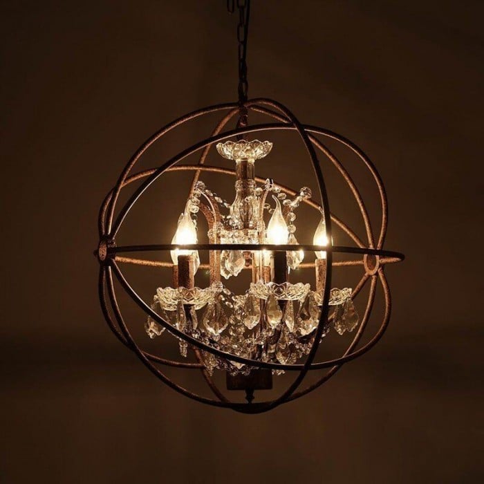 Retro Rust Iron Cage ljuskrona är bara oemotståndlig. Ljusstaken är gjord av järn i rustik stil och dekorerad med lyxig kristall. Det kommer att skapa en nostalgisk atmosfär. Men glöm inte att tända ljusen!